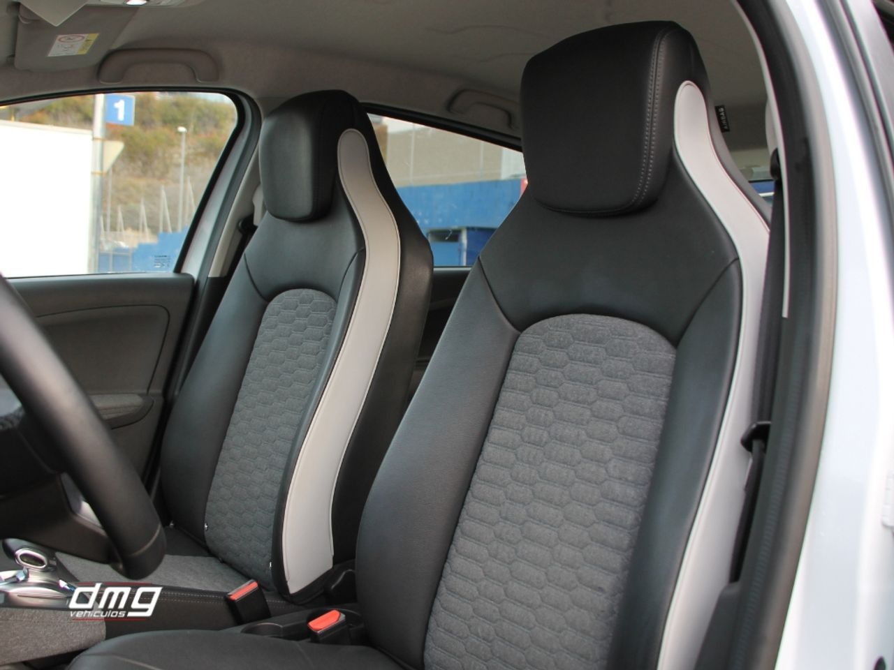 Tapicería mixta de tela/cuero gris